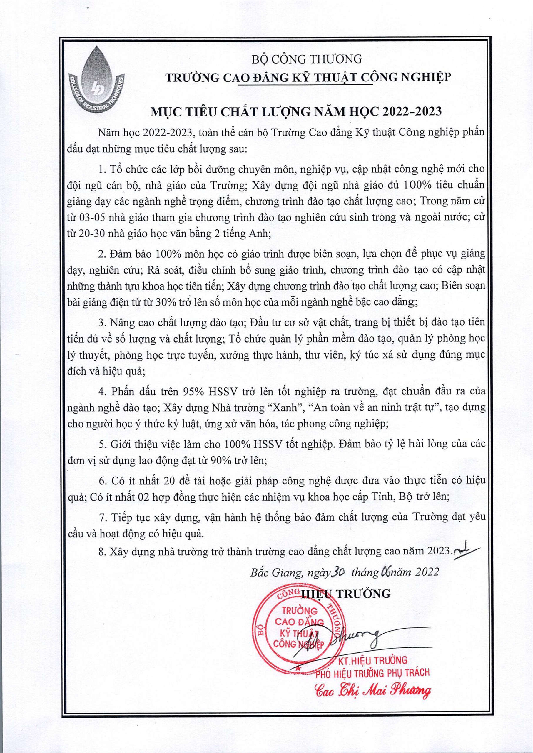 - » Báo cáo tự đánh giá chất lượng Trường Cao Đẳng Kỹ Thuật Công Nghiệp năm 2024 (25/12/2024)