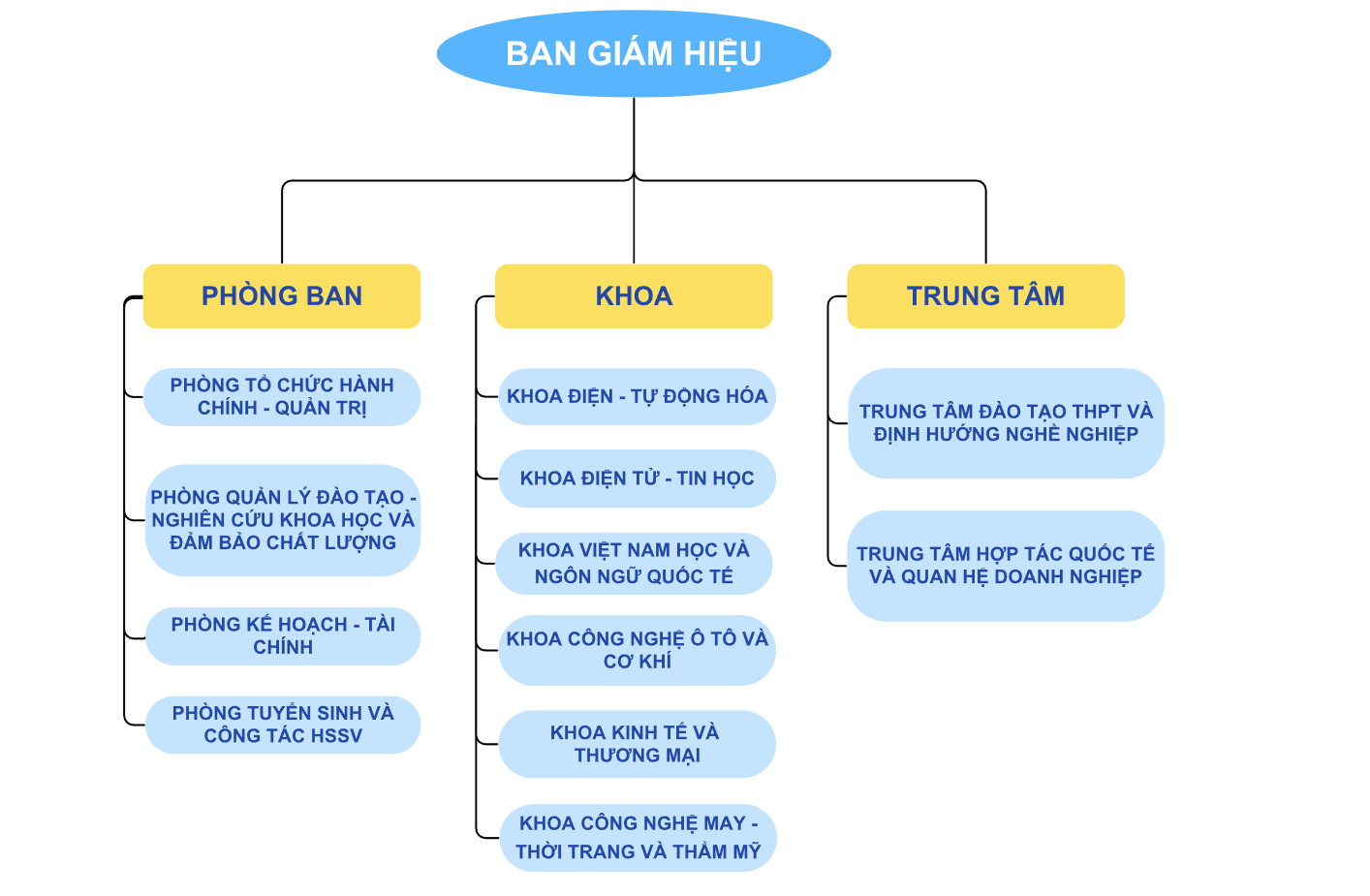 Về cơ cấu tổ chức, BCIT có 04 Phòng chức năng; 06 Khoa đào tạo và 02 Trung tâm.