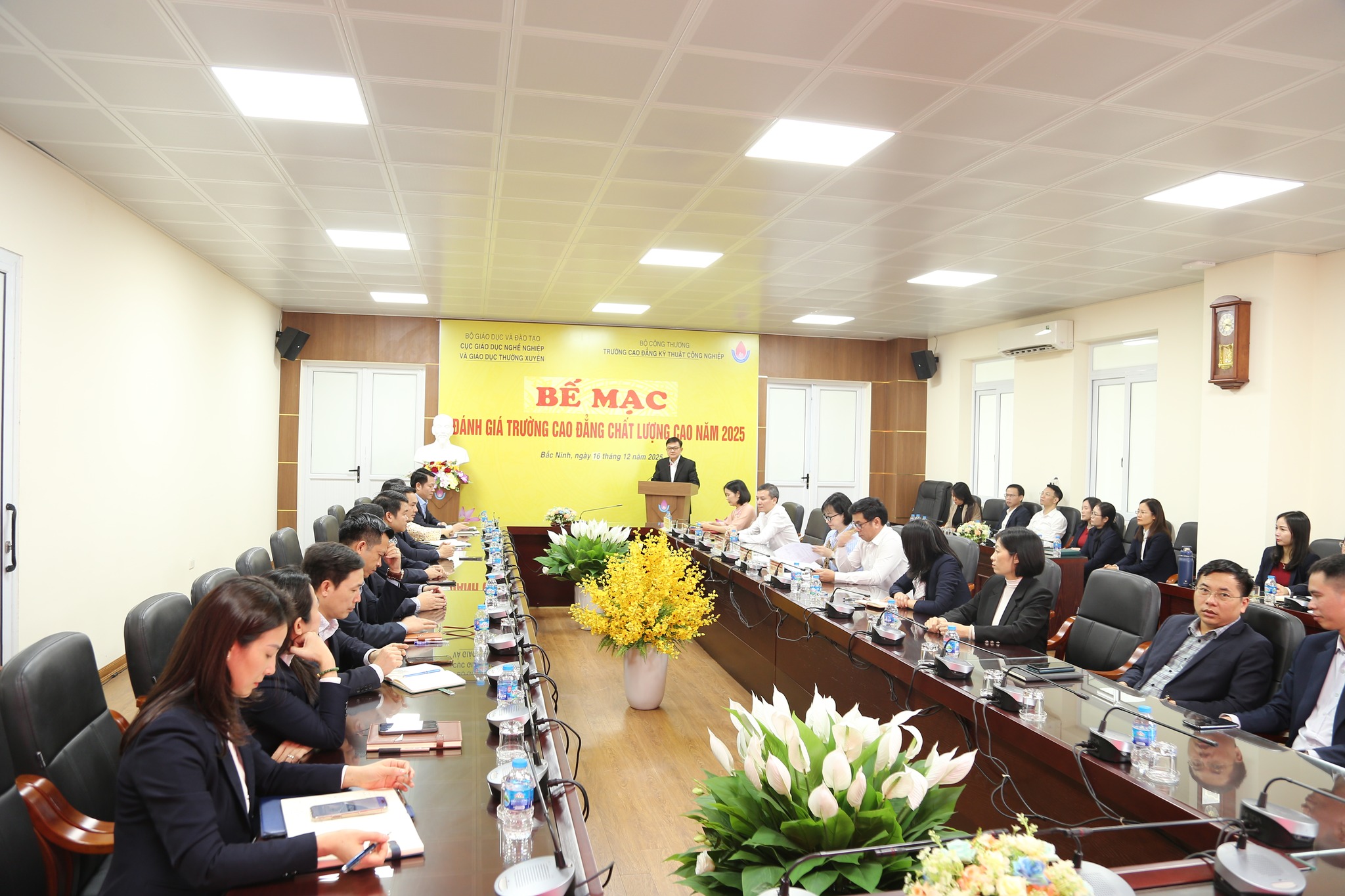 Chiều ngày 16/12/2025 tại Cơ sở 1 của Trường Cao đẳng Kỹ thuật Công nghiệp (Phường Bắc Giang, tỉnh Bắc Ninh), Cục Giáo dục nghề nghiệp và Giáo dục thường xuyên – Bộ Giáo dục và Đào tạo đã tổ chức Bế mạc đánh giá Trường Cao đẳng chất lượng cao đối với Trường Cao đẳng Kỹ thuật Công nghiệp (BCIT).Sau 05 ngày làm việc chính thức (từ 12/12 – 16/12/2025), với sự tập trung cao độ của các thành viên trong Đoàn đánh giá, sự sẵn sàng phối hợp trong thực hiện công việc của các Phòng/Khoa/Trung tâm trong toàn trường. Đoàn đánh giá Trường Cao đẳng chất lượng cao do TS. Đặng Văn Đại làm trưởng đoàn đã hoàn thành các nội dung đánh giá theo kế hoạch đề ra.