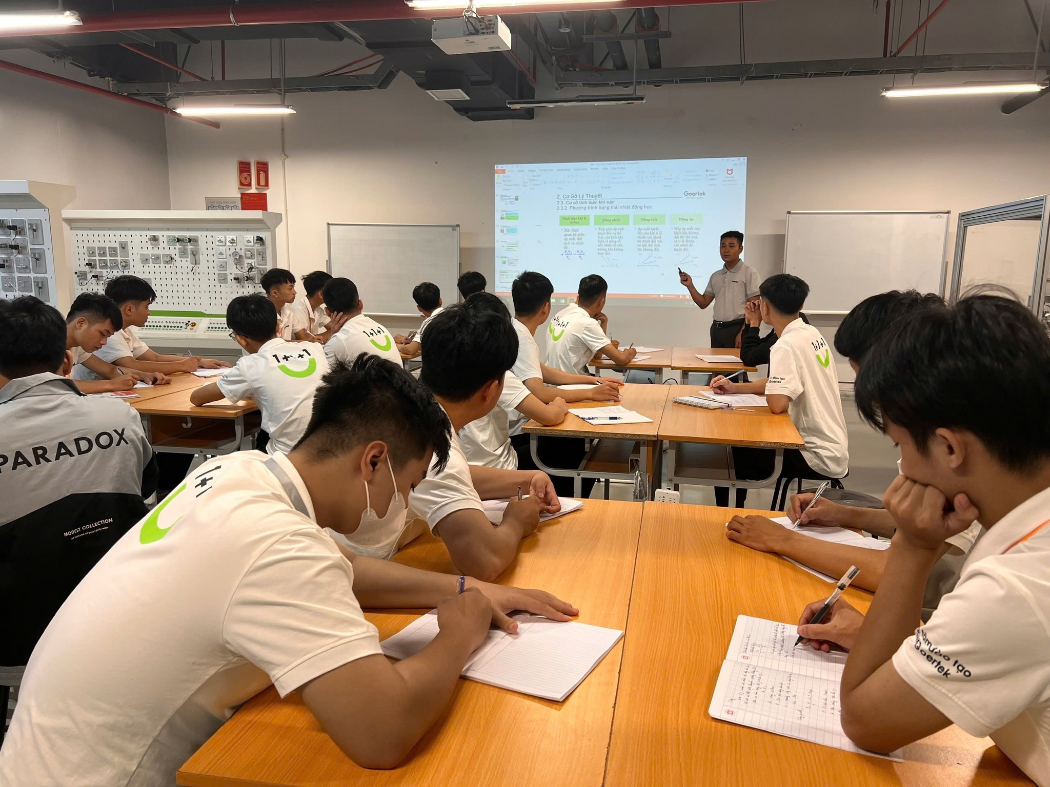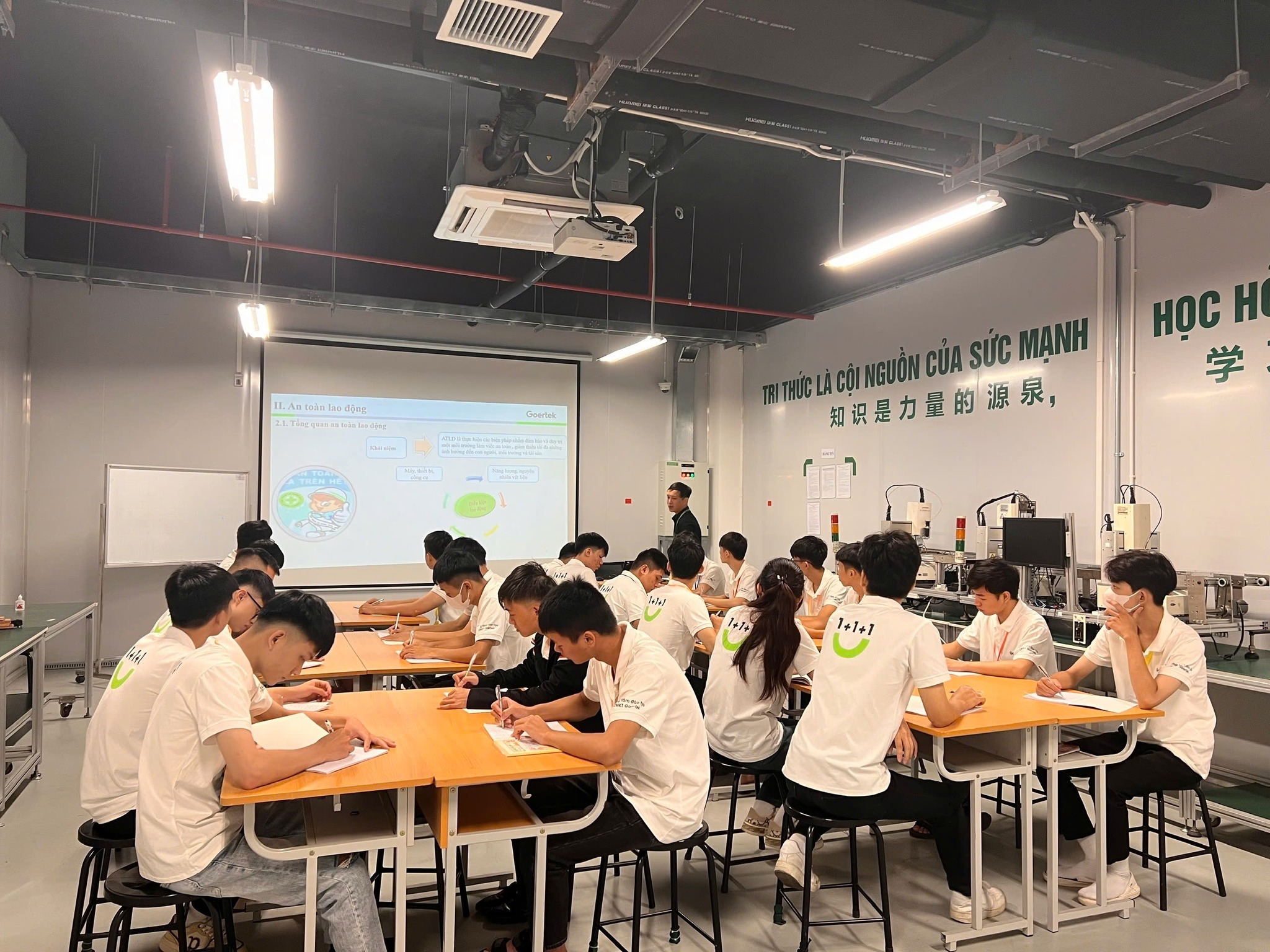 HÌNH ẢNH SINH VIÊN KHOA ĐIỆN – TỰ ĐỘNG HÓA HỌC TẬP TẠI TRUNG TÂM ĐÀO TẠO CỦA CÔNG TY TNHH KHOA HỌC KỸ THUẬT GOERTEK VINA (KCN QUẾ VÕ, BẮC NINH) KHI THAM GIA CHƯƠNG TRÌNH ĐÀO TẠO “1 + 1+ 1”