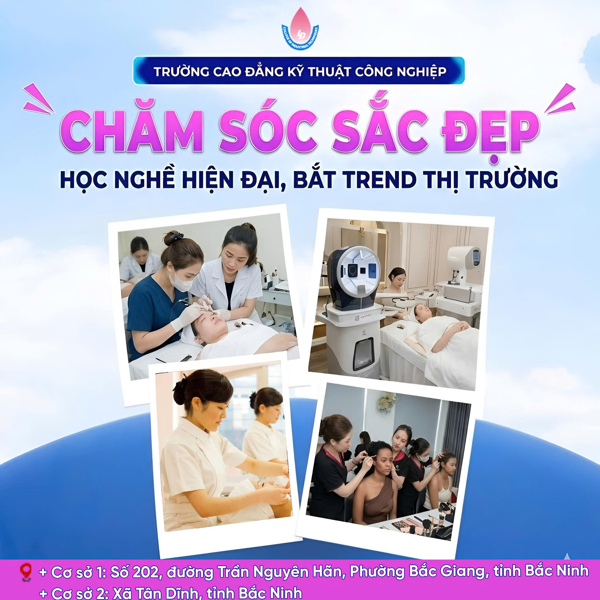 Trong những năm gần đây, nhu cầu làm đẹp không ngừng gia tăng, kéo theo sự phát triển mạnh mẽ của ngành dịch vụ thẩm mỹ. Điều này mở ra nhiều cơ hội việc làm hấp dẫn cho người trẻ. Chính vì vậy, tuyển sinh Chăm sóc sắc đẹp đang trở thành lựa chọn được nhiều bạn quan tâm khi tìm kiếm một ngành học vừa thực tế, vừa bắt kịp xu hướng thị trường.