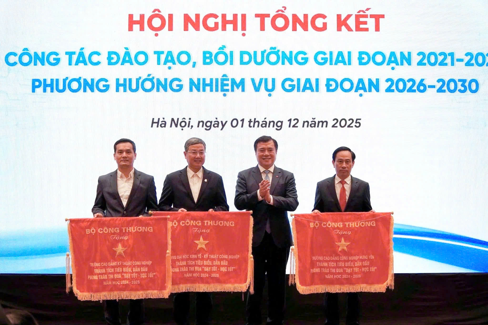 Ngày 01/12/2025 tại Hà Nội, Bộ Công Thương tổ chức Hội nghị Tổng kết công tác đào tạo, bồi dưỡng giai đoạn 2021- 2025 và phương hướng nhiệm vụ giai đoạn 2026 -2030. Dự và chủ trì Hội nghị có đồng chí Nguyễn Sinh Nhật Tân – Phó bí thư thường trực Đảng ủy, Thứ trưởng Bộ Công Thương, đại biểu đại diện các Cục, Vụ, Viện, Công đoàn Công Thương Việt Nam và hơn 30 cơ sở giáo dục Đại học, Cao đẳng trực thuộc Bộ Công Thương. Đây cũng là dịp Bộ Công Thương vinh danh những tập thể, cá nhân tiêu biểu, xuất sắc ngành Công Thương giai đoạn 2021-2025 và năm học 2024-2025 trong công cuộc đào tạo nguồn nhân lực chất lượng cao của ngành Công Thương.
